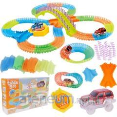 Ogromny Zestaw Wyścigowy Tor dla samochodów + Tory z Kolejką Elektryczną Podwójny tor wyścigowy którego konstrukcyjne elementy pozwolą zbudować tor z ostrymi zakrętami, serpentynami i odcinkami prostymi, a wszystko po to, aby maksymalnie uatrakcyjnić zabawę. Samochody mogą rozwijać prędkość nawet do 20 km/ h !! Zestaw posiada 2 bezkolizyjne skrzyżowania i 2 pętle. Dzięki temu autko i kolejka mogą bezwypadkowo poruszać się po swoich torach. Piloty posiadają ergonomiczny kształt idealnie dopasowany do dłoni dziecka tak, aby nie wyślizgiwały im się z rąk podczas zabawy. Zasilanie zestawu to 4 baterie typu AA (brak w zestawie). Wymiary zestawu: - Tor wyścigowy ok. 118 cm x 77 cm. - Wysokość pętli ok. 23 cm oraz 12 cm. - Wysokość toru ok. 7,5 cm. - Wymiar autka ok. 8 cm x 4c m x 3,5 cm. - Wymiar kolejki ok. 45 cm x3,5 cm x 3,5 cm (2 wagoniki ok 11 cm, 2 wagoniki 8,5 cm). - Wymiary pudełka ok. 72 cm x 47 cm x 5,5 cm. W zestawie znajdziemy: - sportowe autko, - pociąg, - dwa piloty (jeden do kolejki oraz jeden do autka), - znaki drogowe, - latarnie/lampy drogowe, - podstawki pod znaki i lampy, - barierki ochronne, - słupy, - 7 naklejek, - 28 części toru. Przeznaczony dla dzieci powyżej 6 roku życia. Całość zapakowana w elegancki karton, idealny pomysł na prezent !