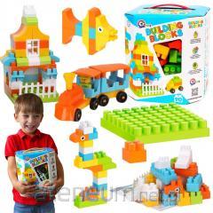 W zestawie: 89 klocków w różnych kształtach i kolorach, 1 płytka 13 x 13 cm., instrukcja, wym. opakowania: 20 x 16,5 x 9 cm., 3+