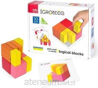 W zestawie: 10 kolorowych drewnianych klocków, 10 dwustronnych kart z zadaniami i wzorami, wym. opk: 21 x 17 x 6 cm., 3+