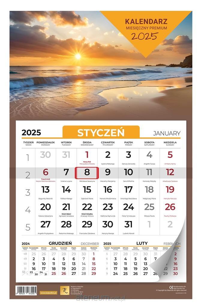 Kalendarz 2026 trójdzielny płaska główka bukiet