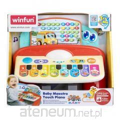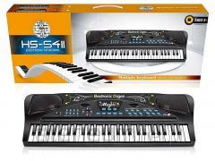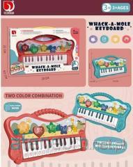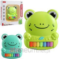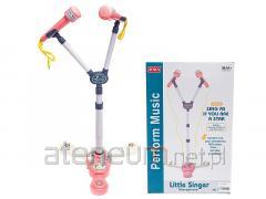 Elektroniczny keyboard z mikrofonem. Instrument posiada 24 klawisze, 4 pady oraz przyciski włączające dźwięki, rytmy oraz 6 piosenek demo. Możliwość włączenia efektów świetlnych. Regulacja dźwięku i tempa. Baterie nie są częścią zestawu.