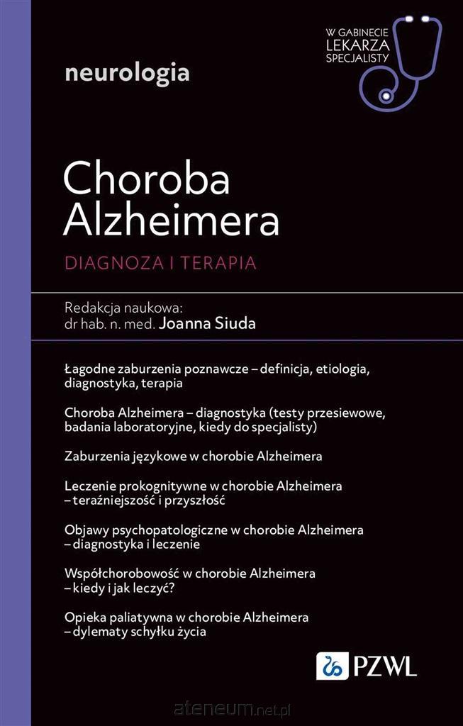Publikacja dotycząca diagnostyki, leczenia i rehabilitacji pacjenta podczas przebiegu choroby Alzheimera, przygotowana z wybitnymi specjalistami neurologii i rehabilitacji neurologicznej. Porusza tematykę szczegółowej opieki nad pacjentem z chorobą Alzheimera, zaburzeń poznawczych, prokognitywnych, możliwych objawów psychopatologicznych czy zaburzeń językowych. Przekazuje też wiedzę o możliwościach leczenia i rehabilitacji, jak również opieki nad pacjentem w terminalnym stadium choroby. Publikacja została oparta na aktualnym piśmiennictwie oraz wiedzy i doświadczeniu z praktyki Autorów. To użyteczne i praktyczne narzędzie do pogłębienia i zaktualizowania wiedzy na temat schorzeń neurologicznych u pacjenta dorosłego dla lekarzy neurologów, studentów medycyny, jak i innych specjalizacji lekarskich i zawodów medycznych, udzielających pomocy pacjentom cierpiącym na choroby neurodegeneracyjnych.