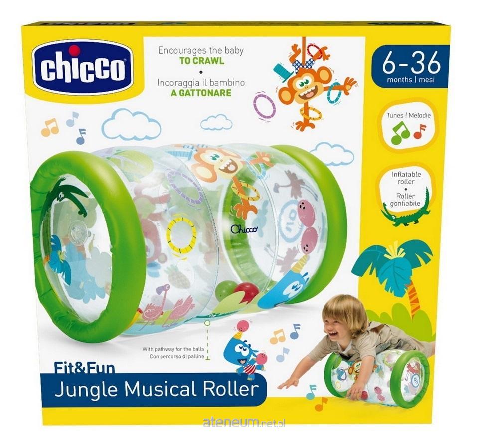 Chicco DMUCHANY WALEC DŻUNGLA to dmuchana, muzyczna zabawka do turlania.