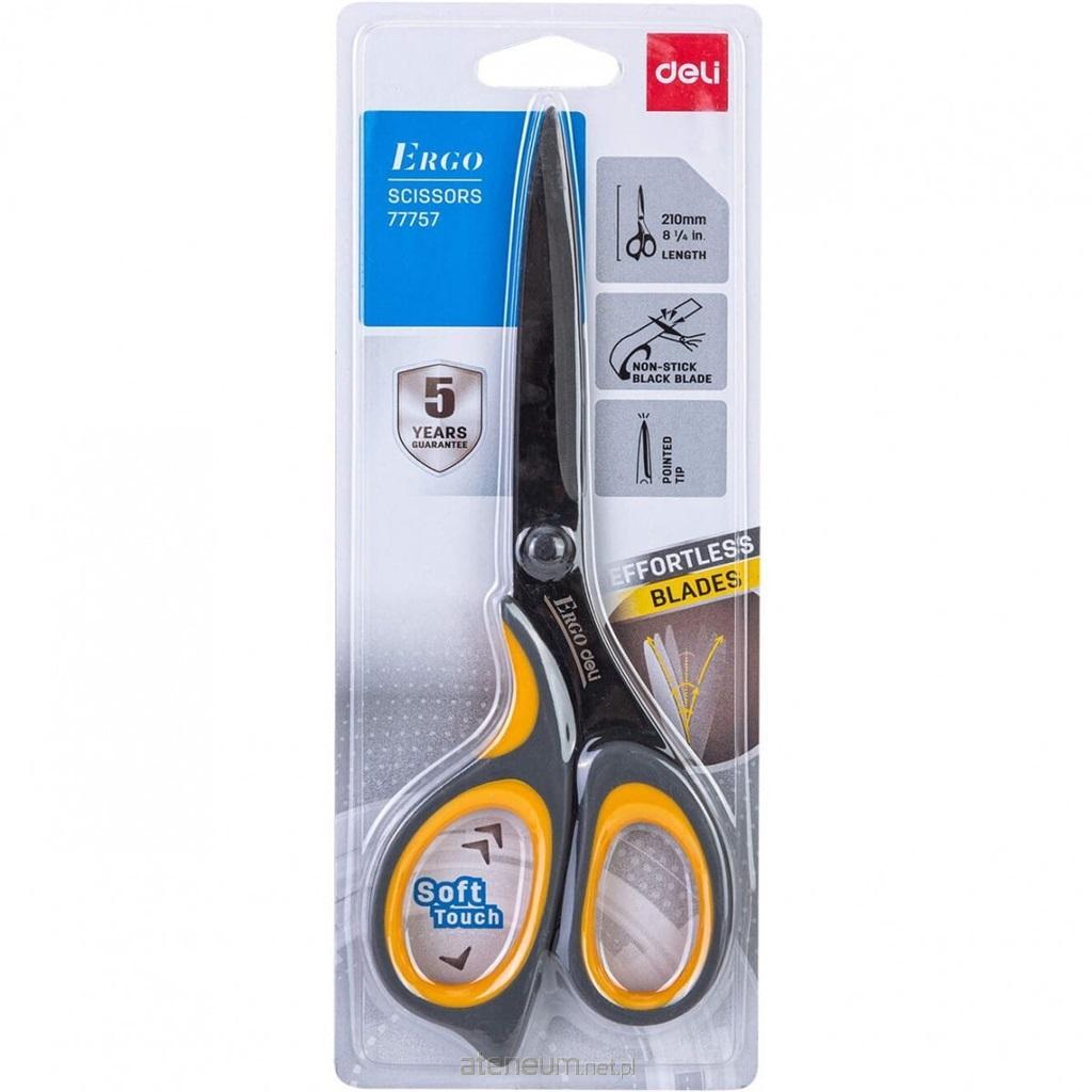Szukasz uniwersalnych nożyczek o wysokiej jakości? Marka Deli ma dla Ciebie idealny produkt - nożyczki uniwersalne 77757 o długości 21cm. Wykonane ze stali nierdzewnej i pokryte czarną powłoką antyadhezyjną, której trwałość zapewni Ci długie lata użytkowania. Ergonomiczny uchwyt Soft Grip sprawia, że nożyczki idealnie leżą w dłoni, a ich używanie jest niezwykle wygodne. Nożyczki są dostępne w kolorze szaro-pomarańczowym, który dodaje im elegancji i stylu.