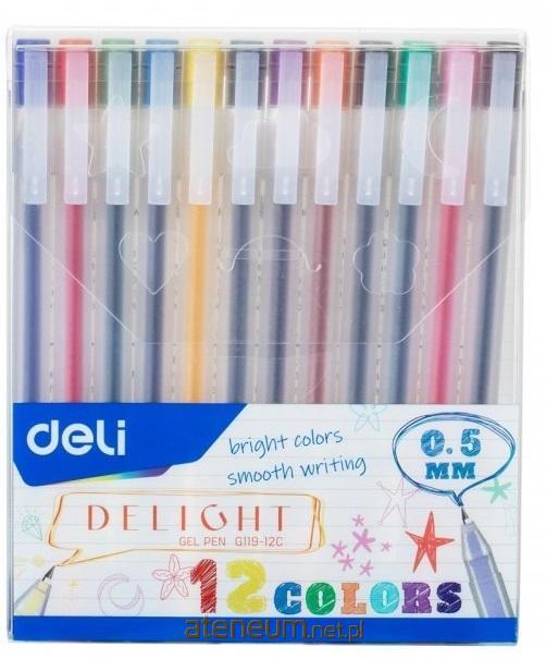 Zestaw 12 kolorów żelowych długopisów DELI to idealne narzędzie do szkolnych notatek, kolorowych projektów oraz organizacji czasu i planowania. Model G119-12C zapewnia płynne pisanie na każdym rodzaju papieru, utrzymując jednolitą grubość linii. Opakowanie wykonane z miękkiego plastiku jest wielokrotnego użytku, a ergonomiczny kształt długopisów zapewnia komfort nawet przy długim pisaniu. Transparentna obudowa umożliwia kontrolę ilości tuszu, a 0,5 mm grubość pisania zapewnia precyzję. Kolory w zestawie to: Ciemny Niebieski, Pomarańczowy, Jasnoniebieski, Czerwony, Zielony, Brązowy, Żółty, Fioletowy, Jasnozielony, Niebieski, Czarny, Różowy.