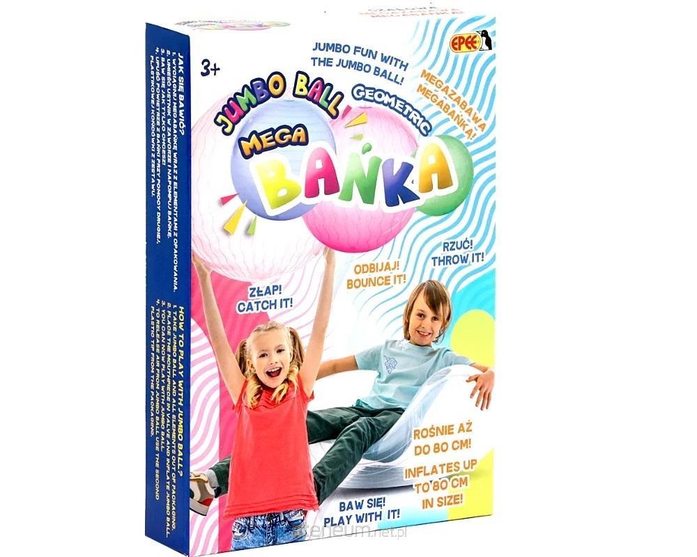 Nowość w linii MegaBańka w geometryczne wzory. Wygląda jak bańka, ale można się nią bawić jak piłką. Idealna do odbijania, podrzucania i grania. MegaBańka to niezwykła zabawka, która zachwyci zarówno małych, jak i dużych entuzjastów ruchu i zabawy na świeżym powietrzu. To idealna kombinacja radości i aktywności fizycznej, której celem jest zapewnienie niezapomnianych chwil zabawy.