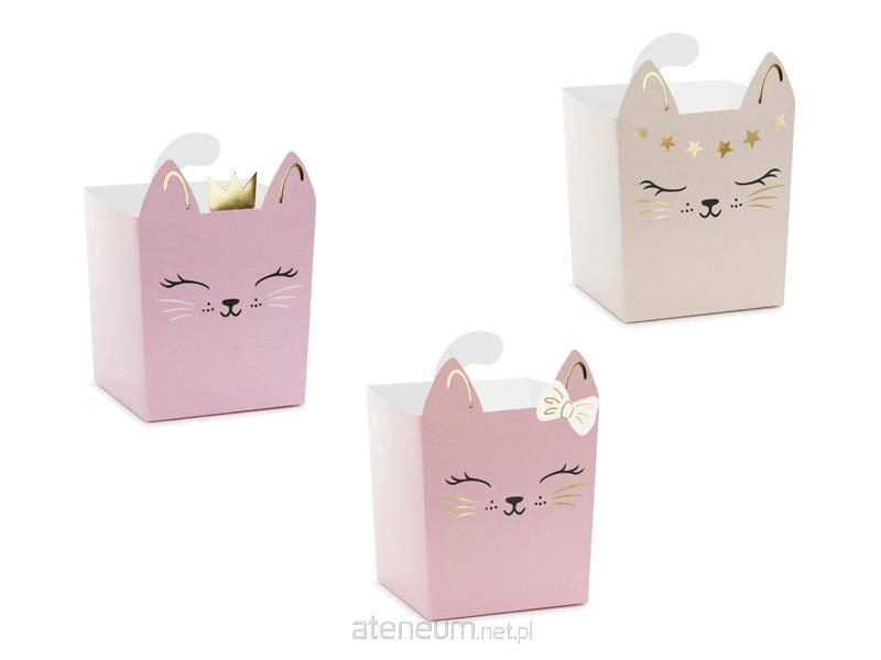 Pudełka na przekąski Kotki wykonane z papieru, mix kolorów. Zestaw zawiera 3 pudełka. Wymiary po złożeniu ok. 10 x 14 cm. Produkt do samodzielnego złożenia.(1 op. / 3 szt.)