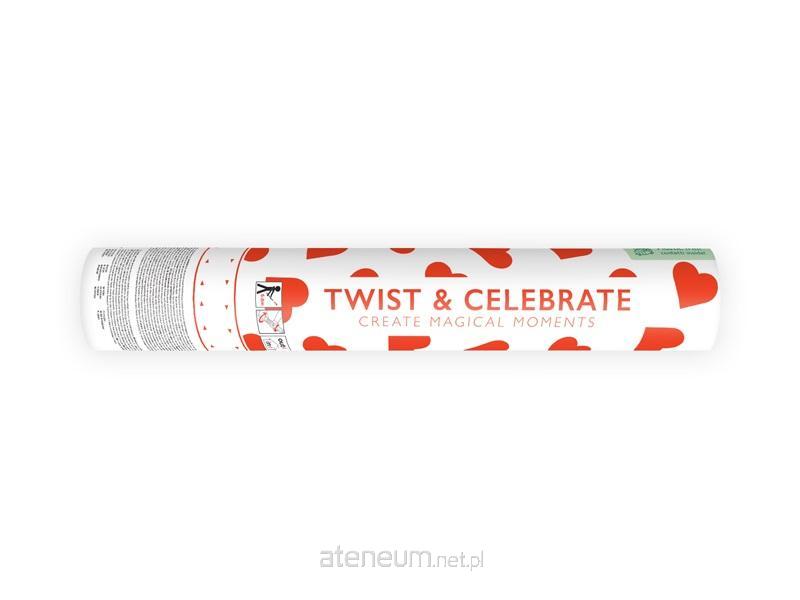 Tuba strzelająca bibułowymi sercami w kolorze czerwonym, długość 28 centymetrów.
