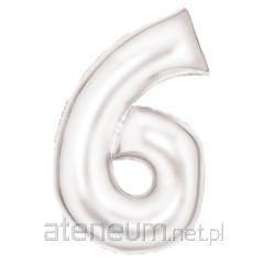 Balon foliowy cyfra 6 satynowa biała 86cm