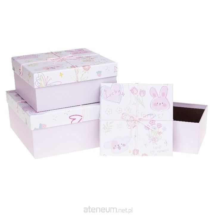 Zestaw pudełek prezentowych 3szt, motyw pastelowy fiolet z obrazkami