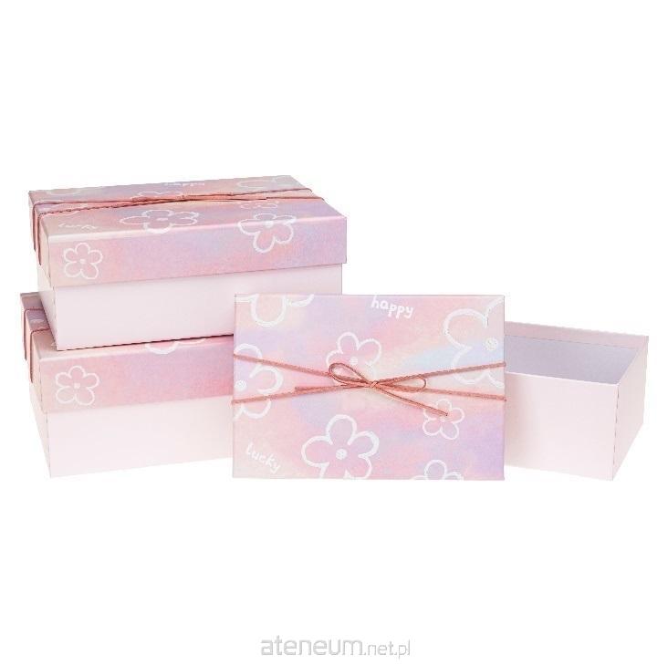 Pudełko prostokątne z kokardą 3szt różowy ROZETTE