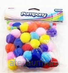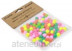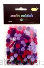 Pompony wielkości 5 mm w miksie intensywnych kolorów w opakowaniu z eurozawieszką. Opakowanie zawiera około 120 pomponów.