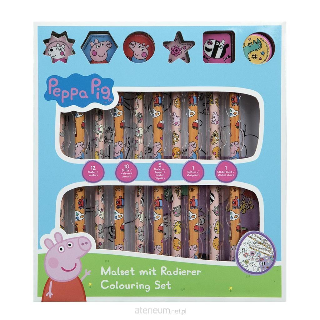 Zestaw do Kolorowania z Naklejkami, 29el. Świnka Peppa Zestaw kolorowanek to wymarzony prezent dla każdego malucha. Znajdują się w nim zarówno kredki, kolorowanki z wizerunkami bohaterów ulubionej bajki Świnka Peppa, jak również naklejki ozdobne oraz temperówka i gumki. Tylko wyobraźnia wyznacza tu granice. Nieważne czy jesteś przedszkolakiem, pierwszoklasistą czy piątoklasistą - potrzebujesz przyborów do swojej przygody gdziekolwiek jesteś. Zgrabny zestaw kolorowanek z wizerunkami z bajki Świnka Peppa- 29 el.. Idealny do zabawy w domu szkole lub w podróży, zmieści się w każdej torbie, a nawet kieszeni. Wewnątrz: 10 kolorowych kredek, 12 arkuszy do kolorowania, 1 arkusz z ozdobnymi naklejkami, 5 nakładek gumek oraz 1 temperówka. Wykonany ze szczególną dbałością. Wspaniały prezent, funkcjonalny dodatek. Wymiary kolorowanek: 17 cm x 9,5 cm x 0,1 cm Wymiary opakowania: 22 cm x 19,5 cm x 2,5 cm. Kategoria wiekowa: dla dzieci powyżej 3 roku życia. Uwaga: produkt przeznaczony dla dzieci powyżej 3 lat. Ryzyko zakrztuszenia.