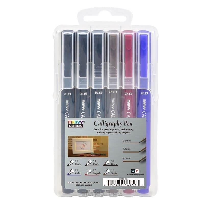 Kolorowe, trzy różne grubości - 2,0 mm, 3,5 mm i 5,0 mm, długopisy kaligraficzne "Marvy Calligraphy" są idealne do kreatywnej pracy na papierze, gdy potrzebna jest czcionka artystyczna (na pocztówki, pozdrowienia, zaproszenia, wizytówki itp.). Atrament na bazie wody, nie zawiera kwasów, nietoksyczny. Końcówki - typ kuty. Nadaje się zarówno dla profesjonalistów, jak i amatorów.