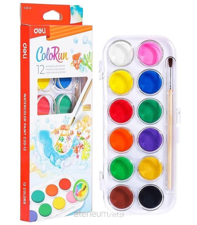Zestaw farb akwarelowych Deli seria Colorun to doskonały wybór dla małych artystów i nie tylko. Komplet intensywnych kolorów, idealny do domu, szkoły i przedszkola. Plastikowe opakowanie z przezroczystą klapą zapewnia łatwy podgląd na kolory i kontrolę zużycia farb. Farby charakteryzują się drobną cząsteczką pigmentu, łatwo rozpuszczają się w wodzie i mają dobrą lepkość.