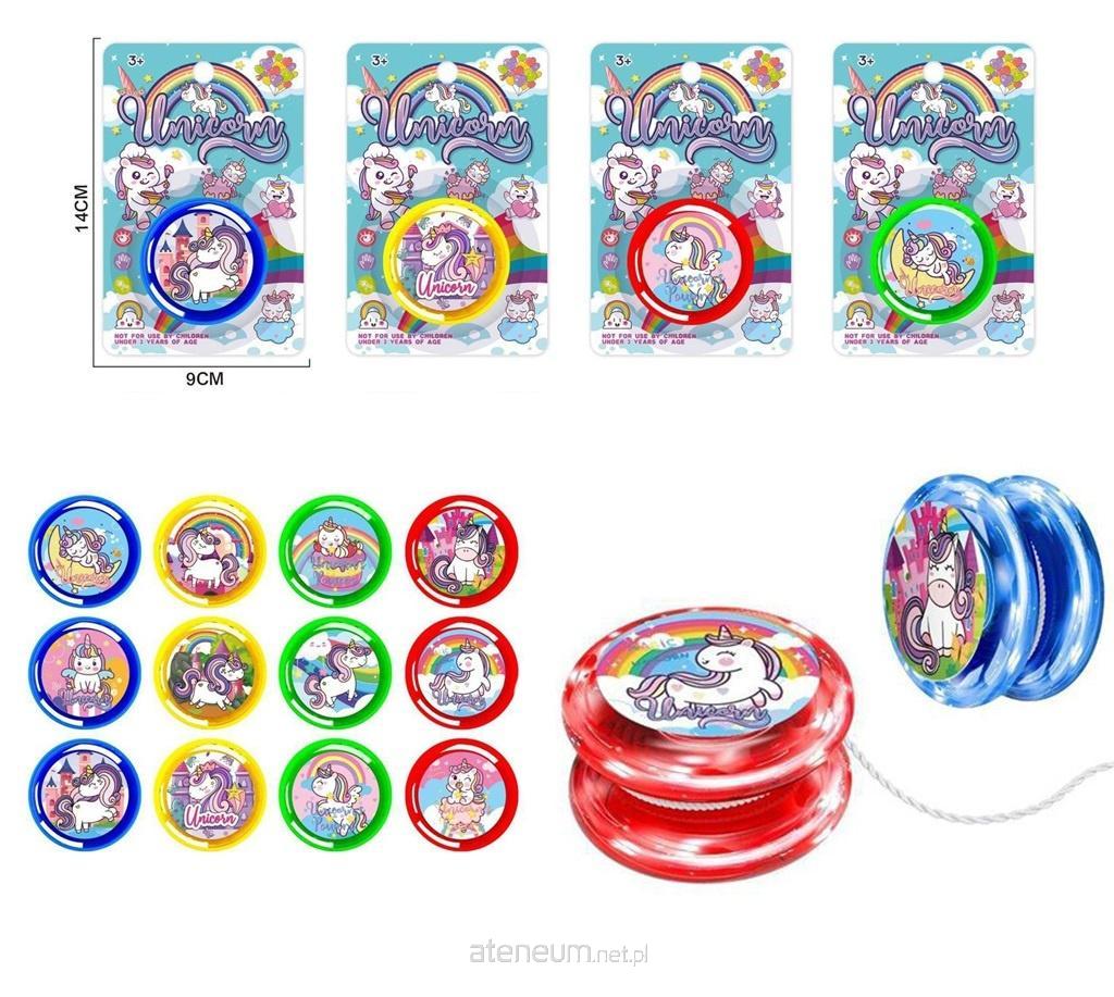 Zabawka jojo ze wzorem jednorożca w której po wprawieniu w ruch uaktywnia się dioda LED, dając efekt wizualny.