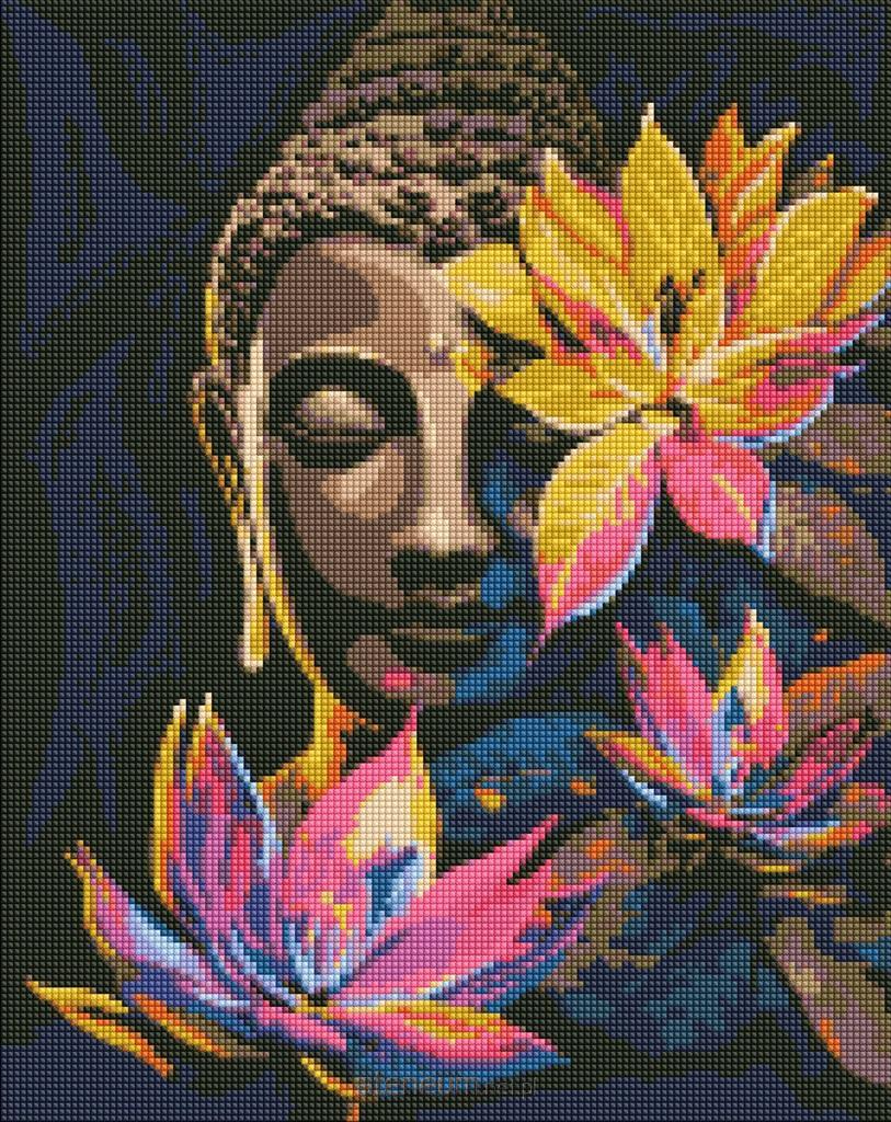 Diamentowa mozaika - Budda z lotosami 40x50cm