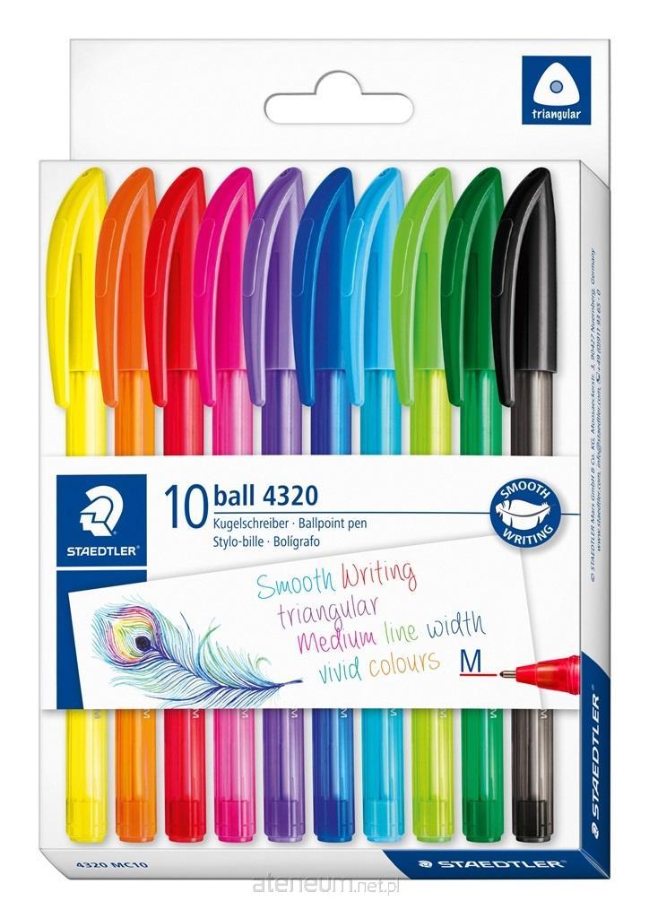 Długopis jednorazowy, trójkątny 4320, M, 10 kol, Staedtler