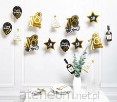 Rozety dekoracyjne Trick or Treat, średnice po złożeniu ok. 32 cm i 40 cm. Zestaw zawiera rozety (2 szt.) i złote pająki (2 szt.)(1 op. / 2 szt.)