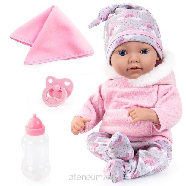 Ta piękna lalka Reborn (38 cm) została zaprojektowana z wieloma detalami. Buzia, dłonie i stopy lalki są realistycznie odwzorowane. Ciekawe ubranko składające się ze spodenki i czapki nadaje lalce uroczego wyglądu dzięki czemu szybko spodoba się każdemu dziecku. Materiał, którym wypełniona jest lalka świetnie imituje wygląd prawdziwego noworodka. W zestawie znajduje się także przytulny kocyk, smoczek i butelka - akcesoria te przydadzą się do opieki nad lalka. Akt urodzenia i wstążka z imieniem są dołączone do zestawu.