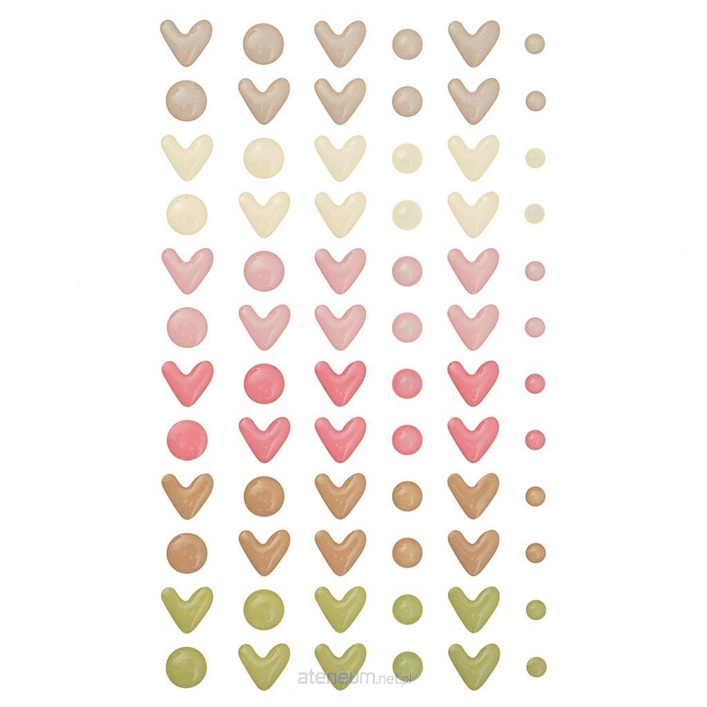 Emaliowane, samoprzylepne serduszka i kropki w odcieniach beżu, oliwki i różu, to wyjątkowy dodatek do wszelkich prac typu cardmaking, scrapbooking, home decor i wielu innych.