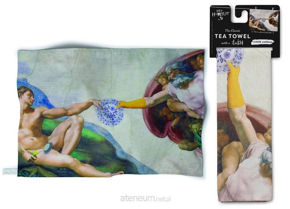 Ręcznik kuchenny, który zachwyci najbardziej wymagających! Zmień swoją kuchnię w galerię, wycieraj naczynia i garnki ściereczką ze Stworzeniem Adama, myjącym naczynia. Ręcznik wykonany jest w 100% z bawełny, która jest miękka i szybko schnie. Posiada mały haczyk do powieszenia po użyciu. Rozmiar: 44,5 cm x 65,5 cm. Jest to humorystyczna wersja fresku "Stworzenie Adama" autorstwa Michała Anioła.
