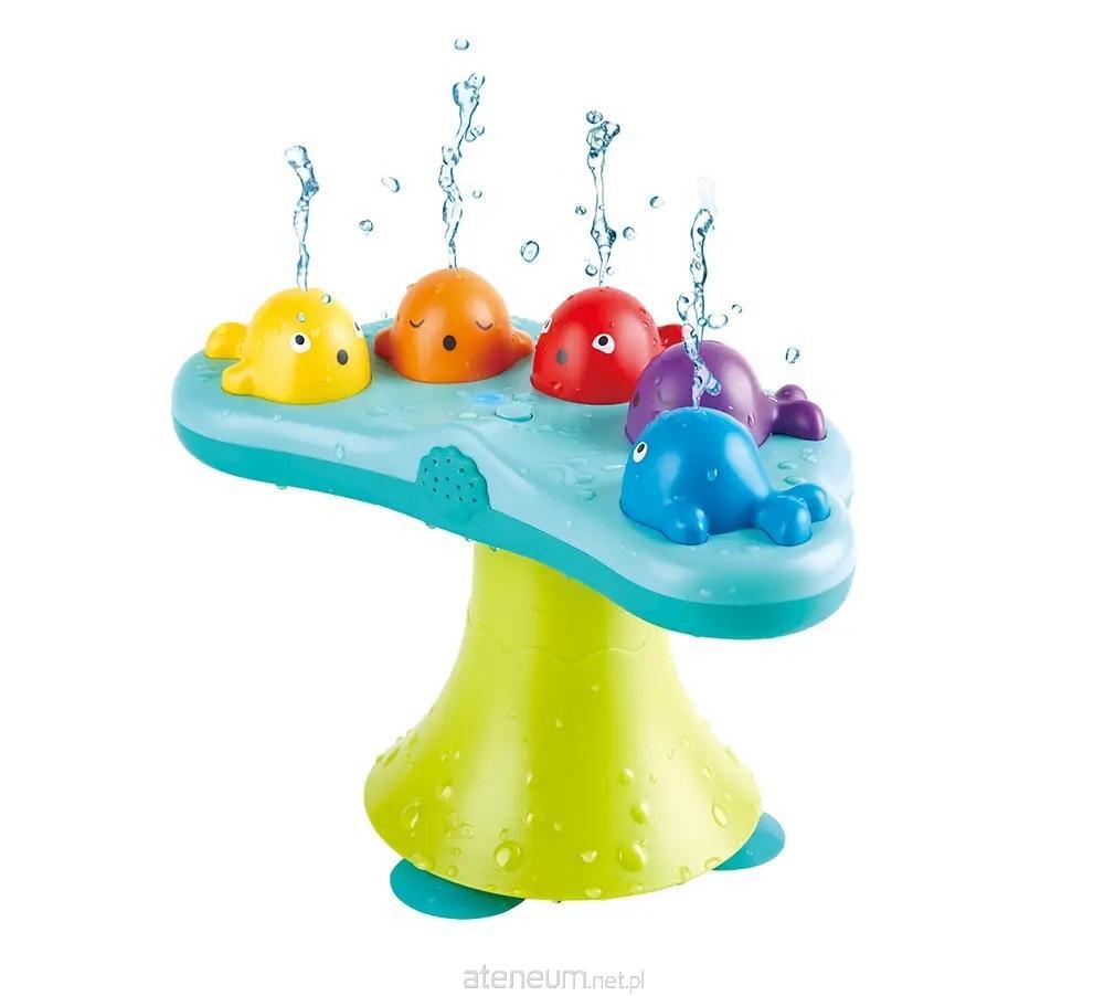 Zamień kąpiel w koncert z interaktywną Muzyczną Fontanną z Wielorybami! Naciskaj przyciski wielorybów, aby grać na nich jak na klawiszach fortepianu Do, Re, Mi, Sol, La. Zobacz jak woda tryska w rytm muzyki. Kiedy przyciśniesz jednego wieloryba, jego fontanna zatrzyma się, a pozostałe będą tryskać z większą siłą. Wymaga 4 baterii AA (brak w zestawie).