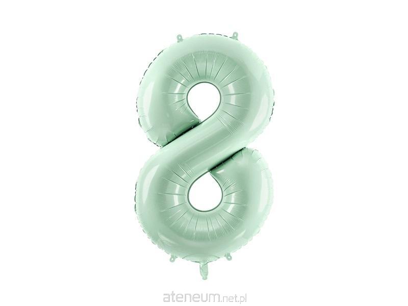 Balon foliowy Cyfra ''8'' w kolorze zielonym, rozmiar przed napompowaniem ok. 86 cm (34''), rozmiar po napompowaniu ok. 72 cm (28''). Do napompowania powietrzem i helem. Zestaw zawiera słomkę
