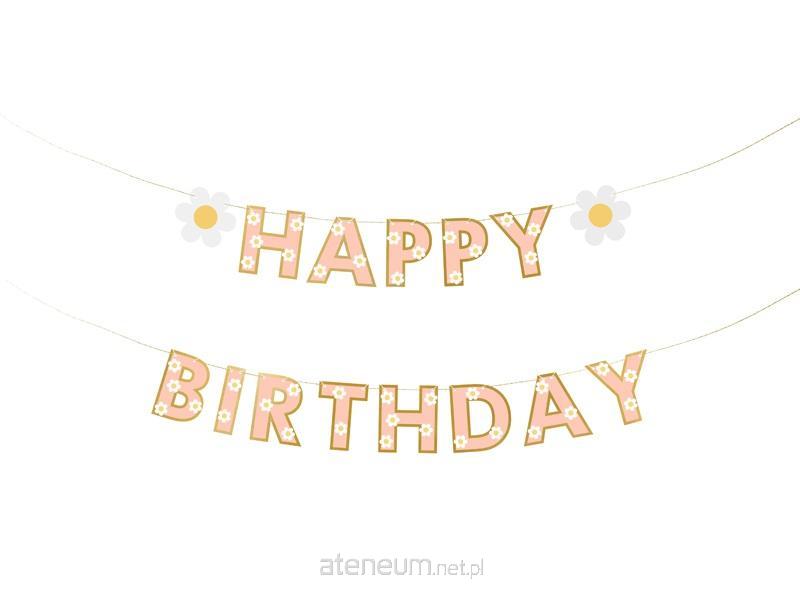 Baner papierowy Happy Birthday, mix kolorów. Wysokość ok. 14.5 cm, długość sznurka ok. 3.5 m. Produkt do samodzielnego złożenia.