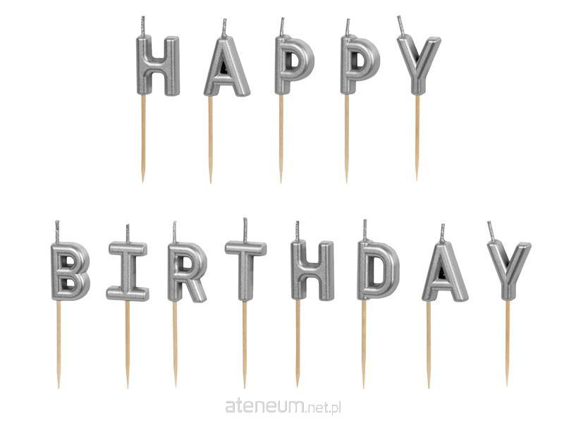 Świeczki urodzinowe Happy Birthday w kolorze srebrnym, wysokość ok. 2.5 cm.(1 op. / 13 szt.)