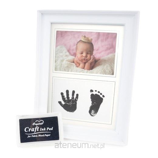 plastikowa ramka na zdjęcia, rozmiar ramki 15,5 x 20,6 cm, szerokość listwy 2 cm, do postawienia lub powieszenia, zawiera poduszkę z tuszem do wykonania odcisku dłoni lub stopy dziecka