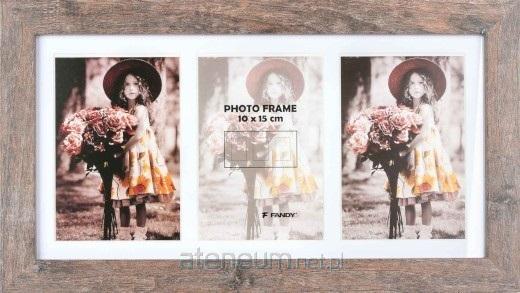 drewniana ramka na 3 foto 10 x 15 cm, rozmiar ramki 41,6 x 23,6 cm, do zawieszenia poziomo i pionowo, szerokość listwy 2,8 cm
