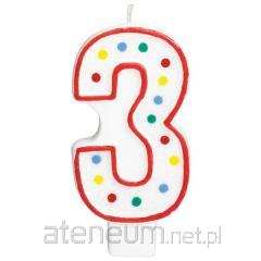 Świeczka urodzinowa cyferka 3 biała w kropki