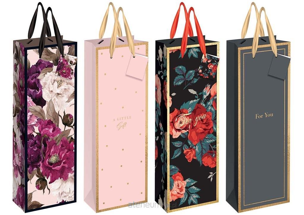 Torebka ozdobna na butelkę 12x36x9cm mix ROZETTE