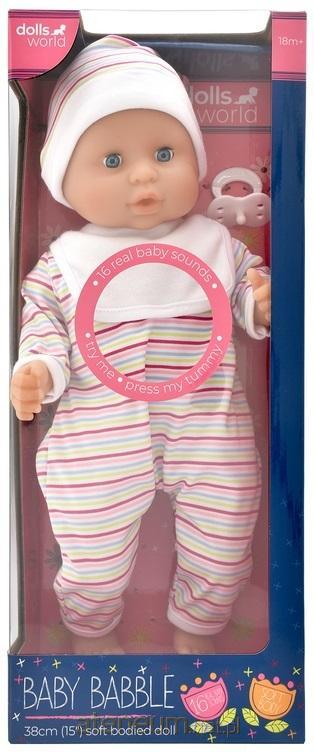 Lalka o wielkości 38cm, która wydaje z siebie 16 różnych, dziecięcych odgłosów. Posiada śpiące oczka, przepiękne ubranko oraz smoczka.