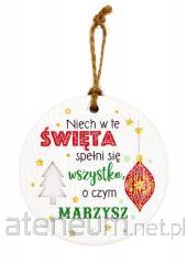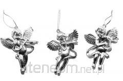 Świąteczna zawieszka dekoracyjna w kształcie aniołka. Dostępna w trzech wariantach kolorystycznych - białym, różowym oraz szarym. Ozdoba zawiera błyszczące elementy brokatowe. Sukienka oraz czapeczka aniołka została wykonana z materiału imitującego futerko. Nóżki są ze sznurka, nieusztywnione. Dekoracja zawiera sznurek umożliwiający powieszenie ozdoby. Wymiar zawieszki: 15 cm.