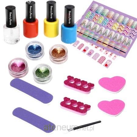 W zestawie znajdują się aż 4 lakiery w różnych, modnych kolorach a także błyszczące ozdoby oraz tipsy, które sprawią, że paznokcie dziewczynki będą się wspaniale prezentować!