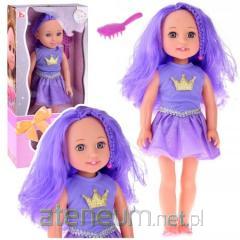 Lalka w sukience z koroną długie włosy fiolet 38cm