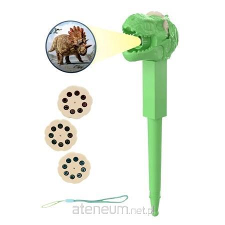 W zestawie znajdują się 3 slajdy, które po włożeniu do wbudowanego w zabawce projektora wyświetlą obrazki dinozaurów. Dziecko może poznać różne gatunki dinozaurów. Długopis wyposażony jest również w latarkę oraz zawieszkę. Dzięki dołączonej do zestawu zawieszce można w łatwy sposób nosić wszędzie ze sobą zabawkę