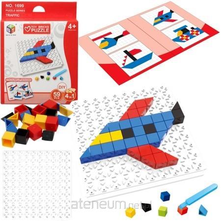 Puzzle - mozaika z motywem transportowym to niezwykła zabawka rozwijająca wyobraźnię i umiejętności logicznego myślenia u dzieci. Zestaw 59 klocków w kształcie trójkątów i kwadratów, o intensywnych kolorach, oferuje nieograniczone możliwości tworzenia barwnych obrazów. Dzięki łatwemu układaniu na specjalnej podstawie i narzędziom do odczepiania, dziecko może swobodnie eksperymentować i tworzyć unikalne kompozycje. Bezpieczne materiały, o wysokiej jakości wykonania, zapewniają długotrwałą i radosną zabawę.