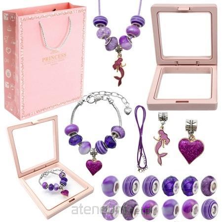 Zestaw obejmuje 10 koralików, 2 urocze charmsy, bransoletkę oraz rzemyk, dając dziecku mnóstwo możliwości twórczej zabawy.