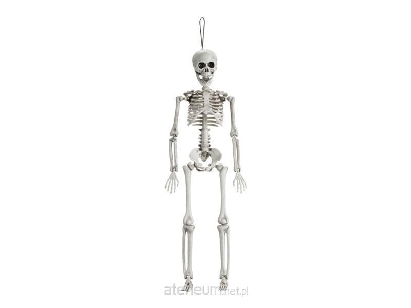 Dekoracja Kościotrup o długości ok. 40 cm. Posiada sznurek do zawieszenia na haczyku. Skład: PP - 99%, żelazo - 1%.