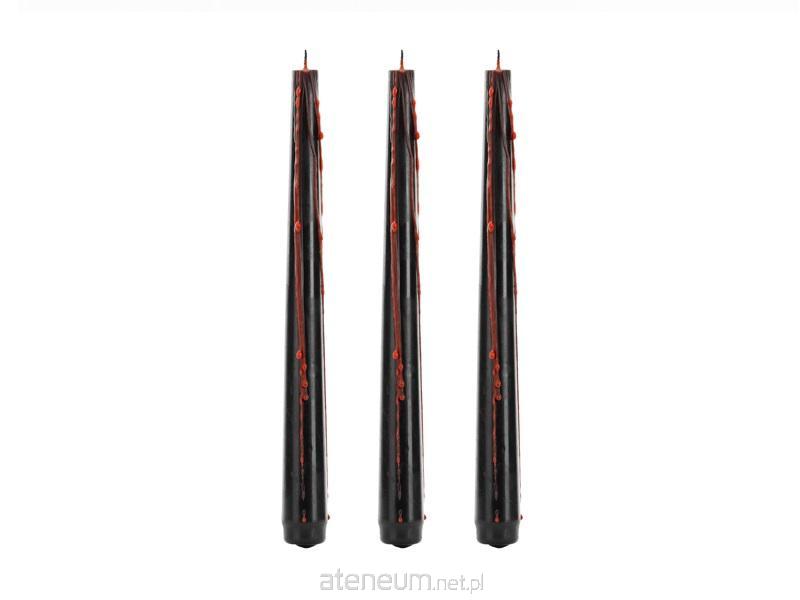 Świece stożkowe z efektem krwawiącego wosku, wysokość ok. 25 cm, średnica ok. 2 cm. Zestaw zawiera 3 świece.(1 op. / 3 szt.)