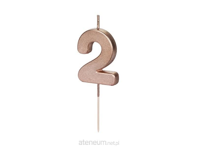 Świeczka urodzinowa Cyferka 2 w kolorze różowego złota na drewnianym patyczku, wysokość cyfry ok. 4.5 cm, wysokość całkowita ok. 9 cm