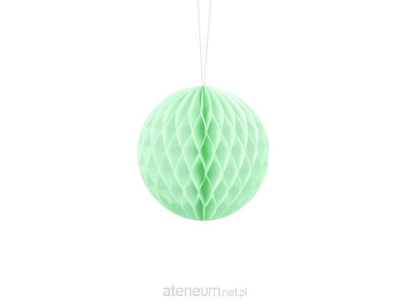 Kula bibułowa w kolorze pistacjowy, o średnicy około 10 centymetrów. Produkt wielokrotnego użytku. Montaż przy pomocy spinacza.