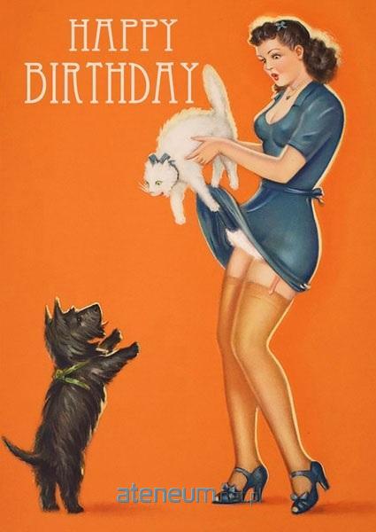 Karnet B6 z kopertą Urodziny Kot i pies, w środku bez tekstu, wyprodukowany w Wielkiej Brytanii.