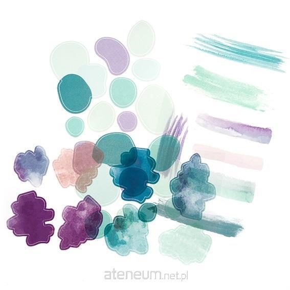 Naklejki PVC matowe, z przezroczystym tłem. Wzór: akwarelowe kształty w pastelowych kolorach, doskonałe jako etykiety.