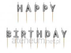 Świeczki urodzinowe Happy Birthday srebrny 13szt