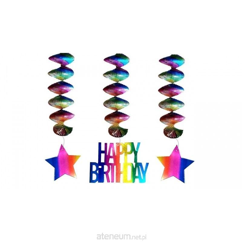 Dekoracja urodzinowa świderki tęczowe "Happy Birthday" DF-010 (3 szt. )