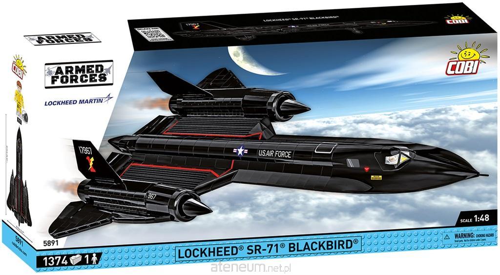 COBI-5891 Lockheed® SR-71® Blackbird® 1374 klocki 1 figurka Grupa Wiekowa 8+ Skala: 1:48 SR-71 Blackbird to amerykański samolot rozpoznawczy, który służył w Siłach Powietrznych Stanów Zjednoczonych od lat 60. do 90. XX wieku. Został zaprojektowany przez firmę Lockheed Martin i był jednym z najszybszych samolotów na świecie. Jego prędkość maksymalna przekraczała Mach 3 (ponad 3 700 km/h), a dzięki wysokości operacyjnej dochodzącej do 26 km był trudny do zestrzelenia przez systemy obrony przeciwrakietowej. SR-71 miał zaawansowaną konstrukcję, wykorzystującą tytan, co pozwalało mu wytrzymać ekstremalne temperatury generowane podczas lotu z prędkością naddźwiękową. Był używany głównie do zbierania danych wywiadowczych, a jego zdolność do ucieczki przed wrogimi pociskami była legendarnym atutem. Z 1374 wysokiej jakości klocków zbudujesz legendarny samolot SR-71 w modelarskiej skali 1:48. Samolot ten pojawia się po raz pierwszy w ofercie firmy COBI. Zestaw został starannie zaprojektowany, dlatego jego budowa przyniesie dużo satysfakcji wymagającemu budowniczemu. Odczepiane podwozie, ruchome lotki skrzydeł i otwierany kokpit z miejscem na figurki to jego podstawowe lotnicze funkcjonalności, które odkryjesz w czasie budowy. Model został pokryty trwałymi nadrukami przedstawiającymi oznaczenia US Air Force. W komplecie znajduje się figurka pilota USAF w charakterystycznym uniformie przywodzącym na myśl skafandry astronautów! Całość zestawu uzupełnia klockowa podstawka ekspozycyjna z tabliczką zawierającą nazwę zestawu oraz logotyp Lockheed Martin. Dzięki intuicyjnej instrukcji budowa jest prosta i nie sprawi problemów mniej zaawansowanym budowniczym. Zestaw spełni oczekiwania miłośników lotnictwa, militariów i klockowych pasjonatów. SR-71 Blackbird będzie się doskonale prezentował zarówno u dorosłego kolekcjonera, jak i w pokoju nastolatka. Buduj historię z COBI! 1374 wysokiej jakości elementów, Wyprodukowane w UE przez firmę z ponad 35-letnią tradycją, Spełniają normy bezpieczeństwa dotyczące produktów dla dzieci, W pełni kompatybilne z innymi markami klocków konstrukcyjnych, Zastosowano tylko trwałe nadruki bez użycia naklejek, Czytelna i intuicyjna instrukcja oparta na rysunkach i ikonach, Skala 1:48 Wymiary modelu (dł x szer x wys): 67,5cm (26.57") x 33,5 cm (13.19") x 12,5cm (4.92")